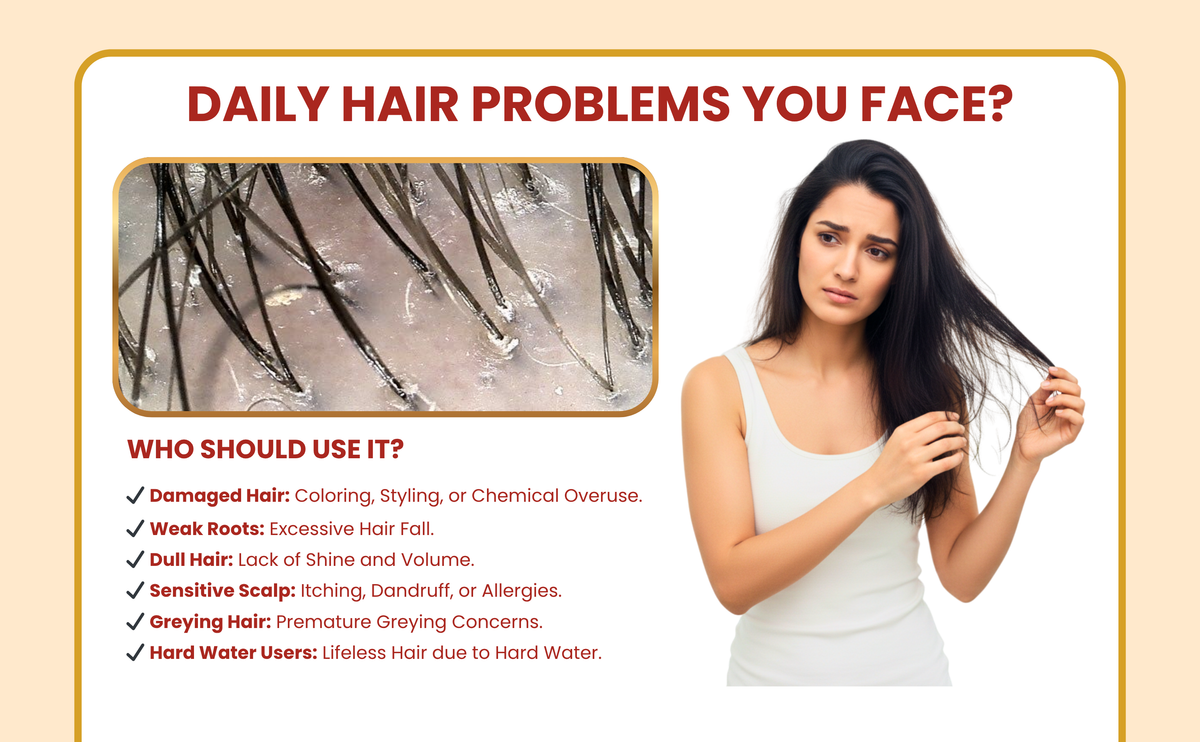 • Fenugreek (Methi) and a blend of Amla, Reetha, Shikakai, and Methidana effectively combat hair fall caused by stress, environmental factors, and poor hair care, offering a natural solution for healthier hair.