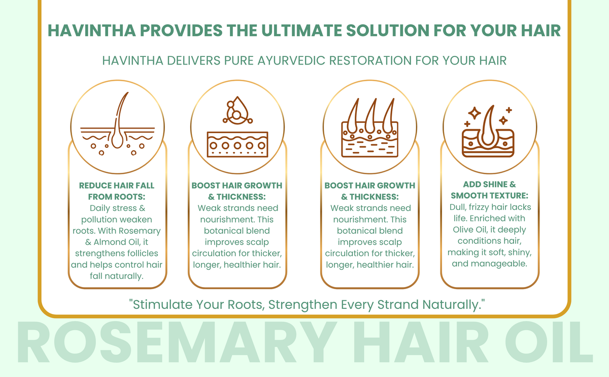 Havintha Organic Rosemary Hair Oil | For Hair Growth & Reduced Hair Fall | Natural Scalp Care for Men & Women | Nourish & Strengthen Your Hair Naturally
