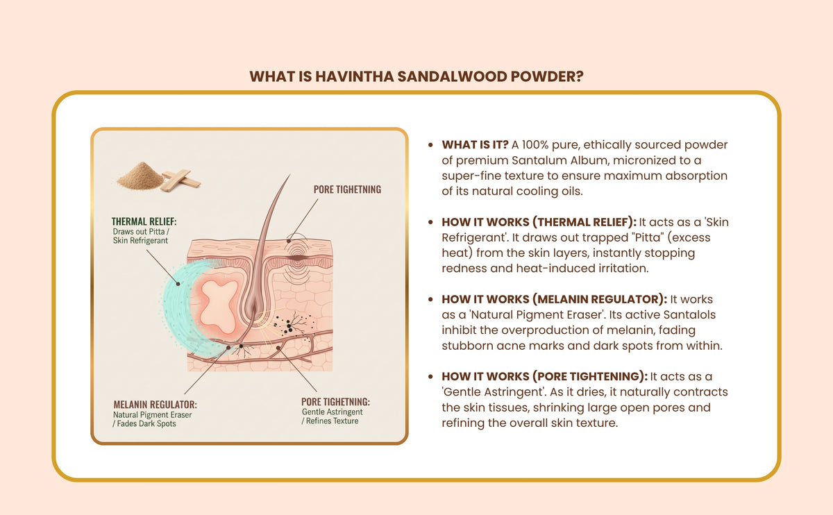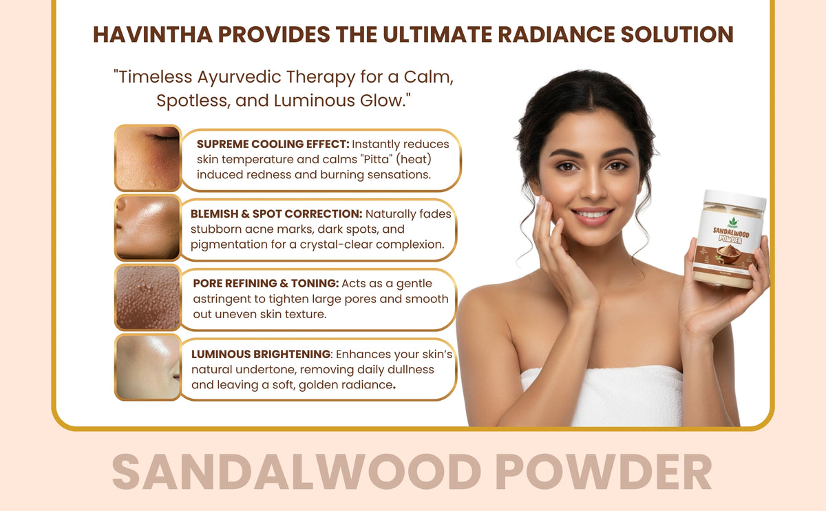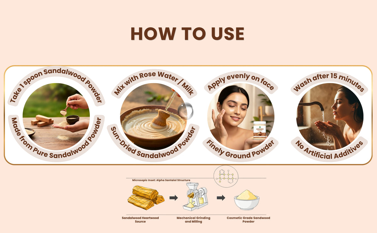 Sandalwood is an excellent remedy for enhancing skin health. For this reason, it is used in many beauty care products. It helps in removing acne and blackheads. It contains natural oil that protects the skin from sunburn and removes tan from the skin. It helps in regulating skin pigmentation. It helps to improve the complexion of the skin. It relaxes skin and soothes it naturally. It has anti-inflammatory properties. It is also used in many beauty soaps for its skin softening quality. It helps in reducing black spots and dark circles from the face. It is also beneficial in removing prickly heat from the skin. The soothing and calming effect of sandalwood avoids prickly heat. It has a soft easing fragrance, therefore used in aromatherapy.